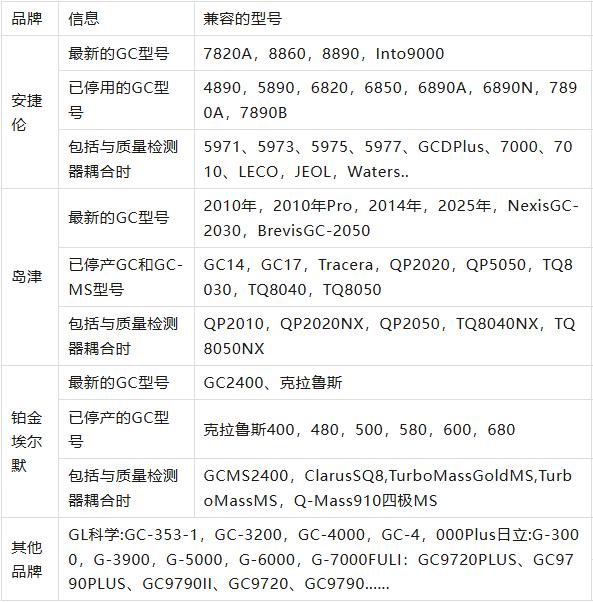 3、HTA自动采样器运行在所有GC品牌和GC型号上。