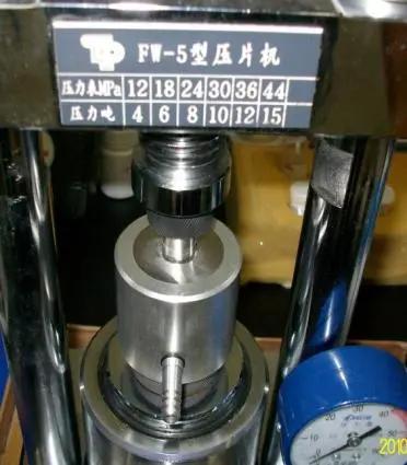 样品制备:预先研磨溴化钾,将研磨好的溴化钾添加到制样模具中,放置压片机上压制,用两片溴化钾压片测试背景,取出,在两片溴化钾中间夹层滴加乙醇样品,将样品架**样品仓底座。