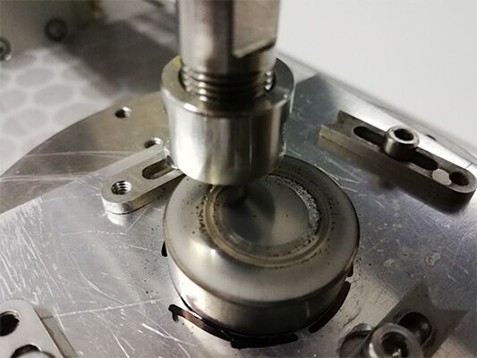 图1a:正在其中***个样品上进行的摩擦和磨损测试。