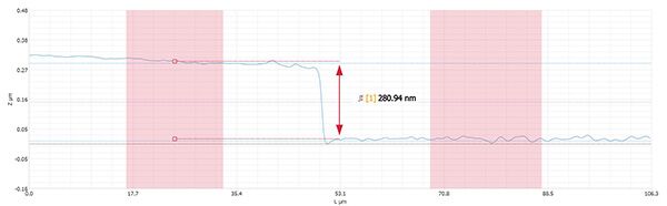 粗糙度和厚度测量均可通过共聚焦(50X)和干涉测量(10X)完成。通过这种方式,我们试图在深度上实现***高分辨率,以获得***准确的数值。