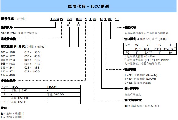 T6系列叶片泵是高压力、低噪音、高效率的定量叶片泵。 丹尼逊t6cc油泵具有工作压力高,可以达到275Bar,如降低工作压力的使用,还可以延长油泵的工作寿命!容积效率高,由此可以提高生产率,减少发热和降低液压设备的运行成本。机械效率高,从而减少了能量的消耗。转速范围宽,转速范围是600---2800rpm,可以优化工作状态,降低噪音。抗污染能力强,t6cc丹尼逊叶片泵采用的是双唇结构的叶片,具有 强的抗污染能力,使用寿命长。适应液压介质的粘度范围大,能在低温下启动和高温下运行,能提供高压力,噪声低,而且容积效率高