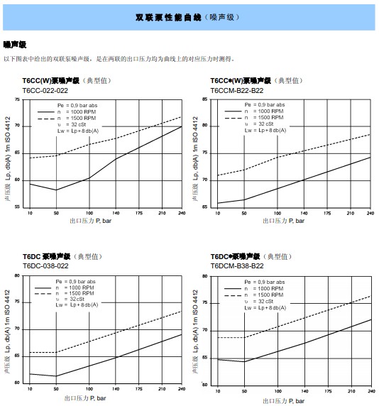 ▲低转速。(600 rpm,车用型泵为400 rpm)、低压力及高粘度(860 cSt,车用型泵为2000 cSt)运行能力 - 使T6 系列叶片泵能适应低温工况,功耗小且无卡滞危险;