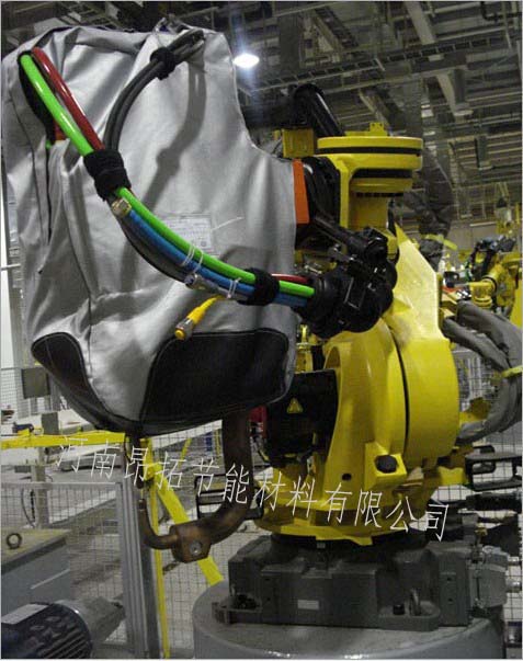 机器人高温防护服是 种专门为机器人高温防护、可拆装、可重复使用的带 热及饰面层的隔热套。机器人高温防护服系列产品具有耐高温性能好、使用寿命长、安装使用方便、安全可靠隔热效果好、外形美观、可重复使用等特点。