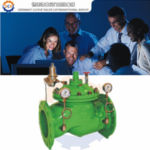 当阀门从进口端给水时,水流过针阀进入主阀控制室,出口压力通过导管作用到导阀上。当出口压力高于导阀弹簧设定值时,导阀关闭。控制室停止排水,此时主阀控制室内压力升高并关闭主阀,出口压力不再升高。