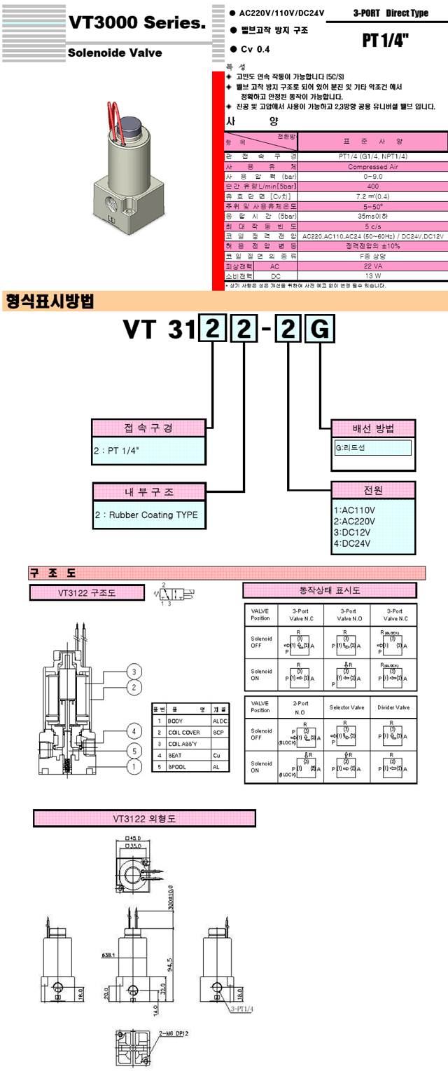 韩国DKC电磁阀VT3122系列