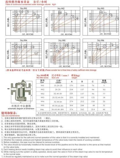 用途:用于石油、化工、电力、纺织印染等行业的各种蒸汽加热设备、蒸汽管网和低过热蒸汽工况。它能迅速、自动排除冷凝水,有效地阻止蒸汽泄漏。