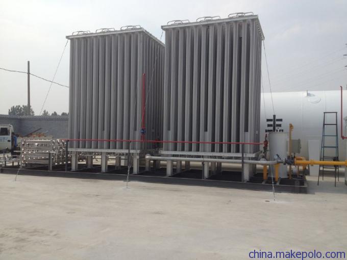气化装置是气化站向外界供气的主要装置,设计中我们通常采用空温式气化器,其气化能力宜为用气城镇高峰小时计算流量的I.3~1.5倍,不少于2台,并且应有1台备用。当环境温度较低时,空温式气化器出口天然气温度低于5℃时,应将出口天然气进行二次加热,以保证整个供气的正常运行。