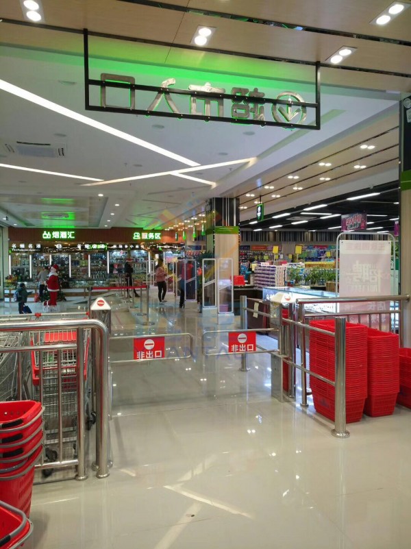超市摆闸是 套功能强大的快速无障碍人员通行管制系统,是实现智能化人员出入管理的理想设备,它很好地解决了传统三辊闸通行有障碍,尤其对携带行李人员和残障人员造成的出入困难以及通行速度较低的问题,是三辊闸理想的升 产品。主要用于商场、***小区等。 主要功能:单向感应开、感应关;双向也可扩展同 样功能。