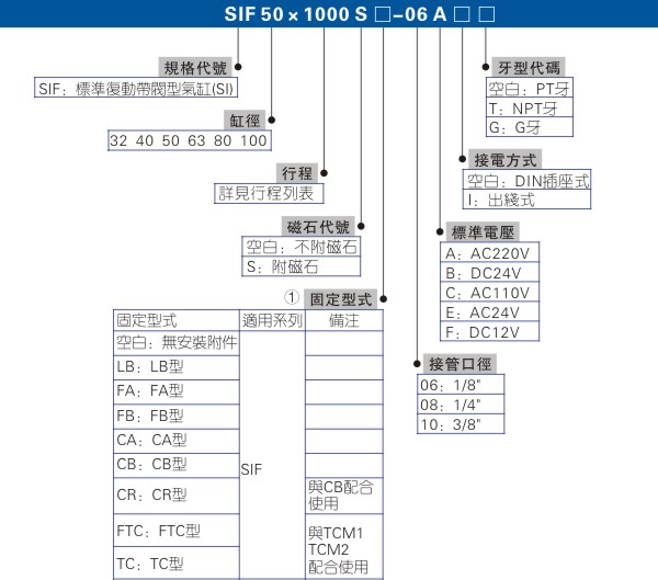 1、属于标准气缸与阀组合派生系列,配合4M210及4M310使用,缸径32、40、50配4M210阀,缸径63、80、100配4M310阀;