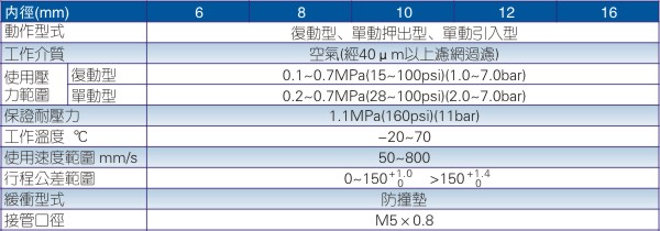 7、Φ4缸径气缸负载须与气缸同轴,避免侧向负载,否则活塞杆会弯曲变形且损坏杆端螺纹。单动型不可在回程时加载;