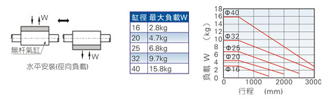 1、气缸负载大小由理论保持力(理论推力)决定,为确保气缸的正常使用,负载大小不可超过下表规定的气缸理论保持力(理论推力);