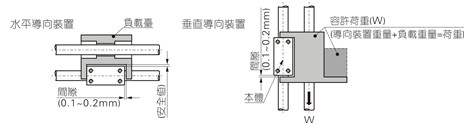 3、垂直安装:容许方向力矩不要超过规定值,并根据负载与行程关系曲线确认几何数据。