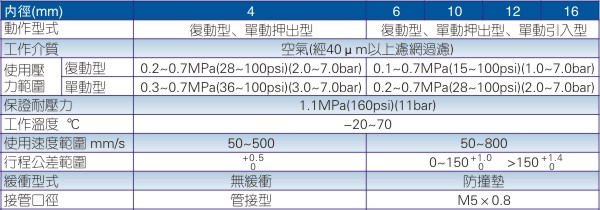 7、Φ4缸径气缸负载须与气缸同轴,避免侧向负载,否则活塞杆会弯曲变形且损坏杆端螺纹。单动型不可在回程时加载;