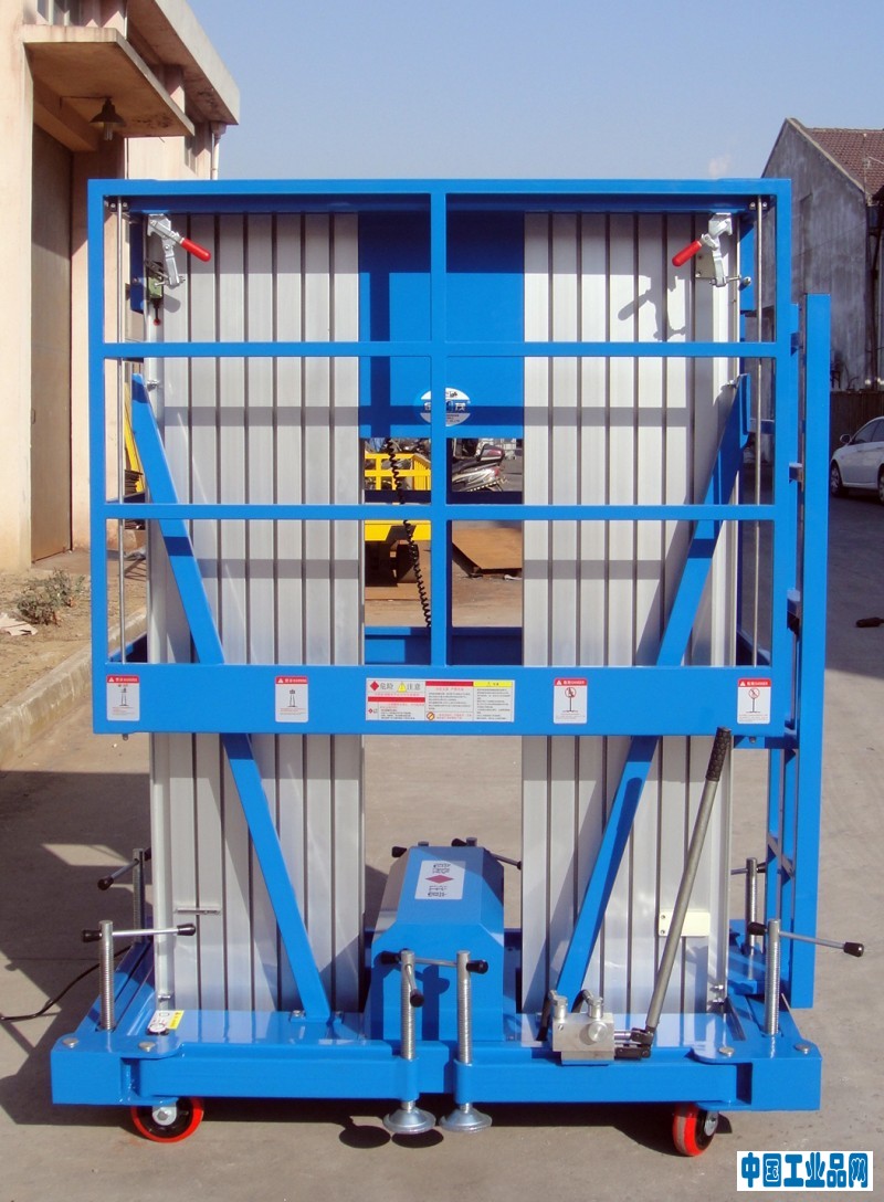 双立柱铝合金升降机:全新设计的新 代产品,整体采用高强度铝型材精制而成由于型材强度高,使升降台的偏转与摆动 小。采用双桅柱式结构,载重量大,平台面积大,稳定性 好,运转灵活,推行方便。它轻盈的外观,能在 小的空间内发挥 高的举升能力。该升降机广泛用于厂房、宾馆、大厦、商场、车站、机场、体育场等。可用作电力线路、照明电器、高架管道等安装维护,高空清洁等单人工作的高空作业。