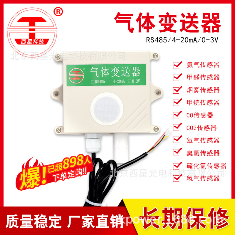 广泛适用于室内外环境二氧化碳浓度监测,广泛用于农业大棚,花卉培养等需要二氧化碳浓度监测的场合。本产品采用高灵敏度的气体检测探头,具有测量范围宽、线形度好、信号稳定,精度高等特点。信号输出4-20mA/0-5V-0-10V/RS485(标准的modbus协议)出厂可选,485型协议内容开放,支持二次开发,485型信号传输距离可达2000米。设备型号分为单CO2与CO2温湿度 体两种,下单前请客户根据实际需求选型。