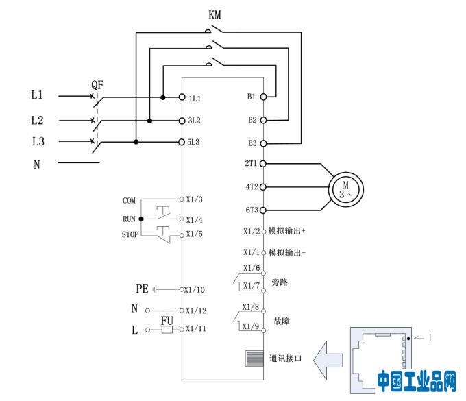 ②、PE接地线应尽可能短,接于距软起动器 近的接地点,合适的接地点应位于安装板上紧靠软起动器处,安装板也应接地,此处接地为功能地而不是保护接地。