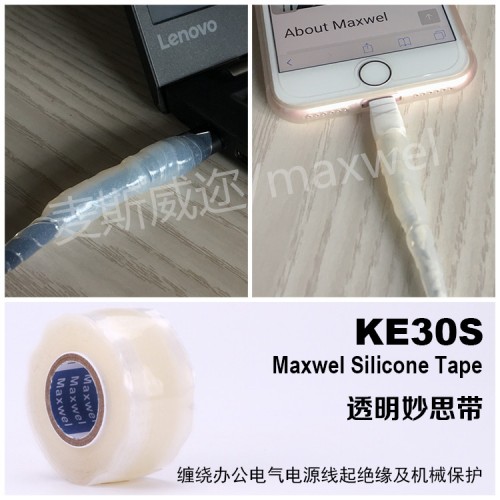 (3)麦斯威迩-KE30S妙思胶带的主要成分含有Si,即使在燃烧之后,生成SiO2,依然具有 缘性能;是 款环保阻燃硅胶自粘带