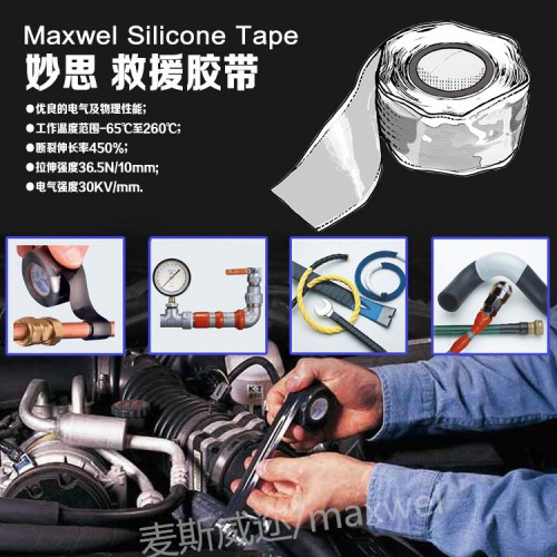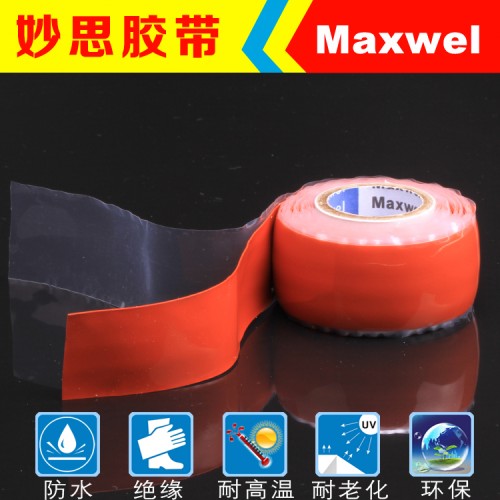 (2)麦斯威迩-妙思胶带用胶带缠绕后,以1/2重叠方式缠绕,瞬间实现自身融合,24小时后完全自融,形成 体,缠绕后各层永玖融合成 层,而且该过程不可逆转,紧紧的贴合被缠绕处,由于服帖性好,即使在不规则弯曲部位也能紧紧贴合,不会翘边,实现密封功能,亦称自熔硅胶带;