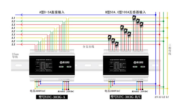 RS485电参数采集模块型号YFC303G多路智能电参数采集模块高精度电参数采集模块品牌盈沣