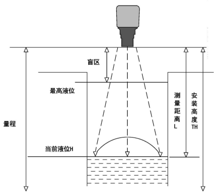 仪表量程指仪表能够测量的距离,安装高度TH应小于量程。