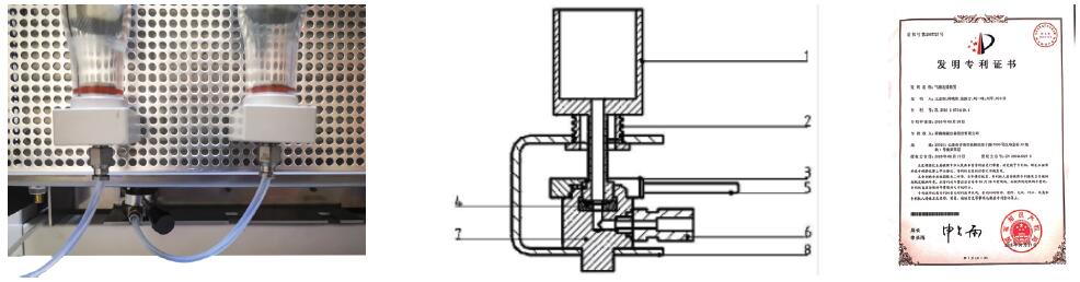 专利的气路连接设计(专利号:CN106443029B),可以实现燃烧管和接头在高温下快速拆卸或安装,避免常规卡套接头由于不可逆磨损造成的漏气隐患